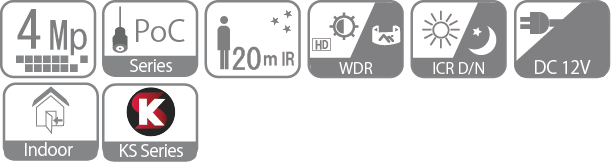 4MP PoCバリフォーカル 赤外線LED搭載 ドーム型屋内カメラ